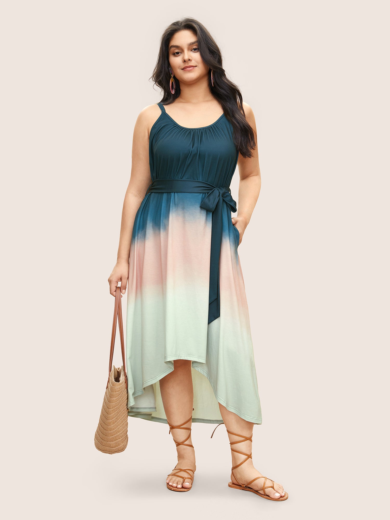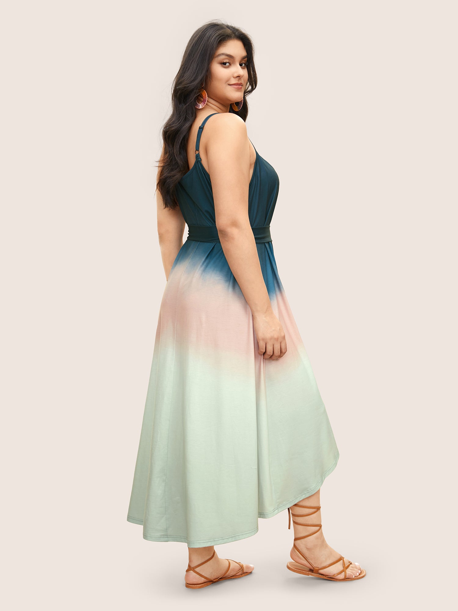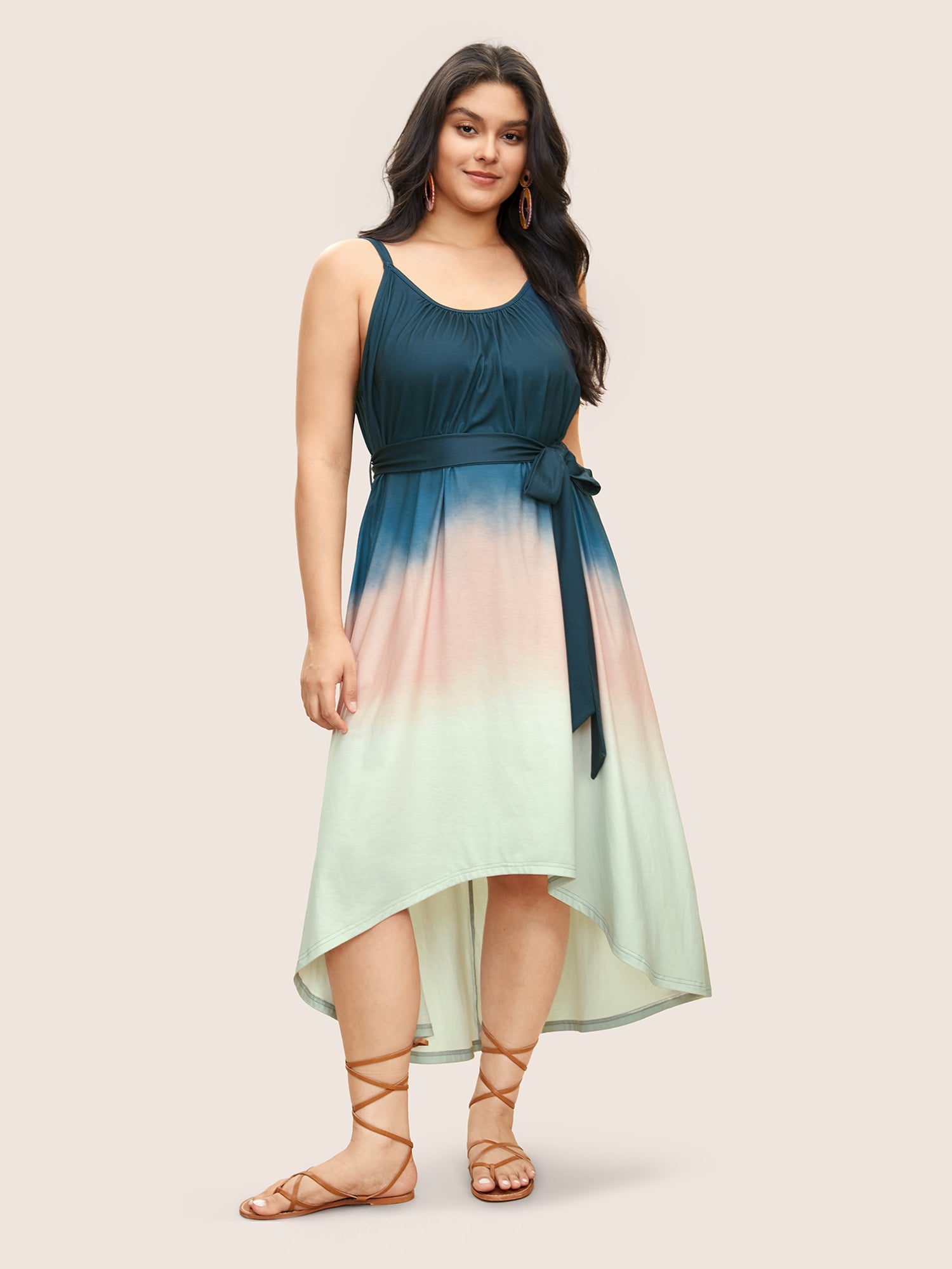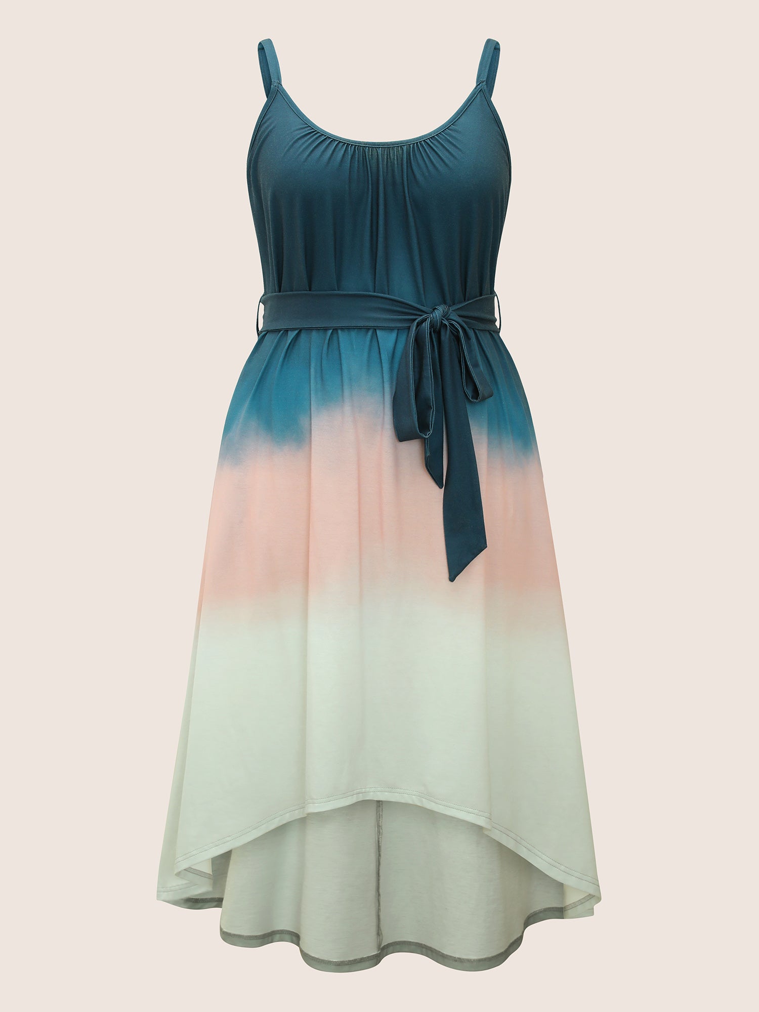 Tie Dye Belted Gathered Asymmetrical Hem Dress