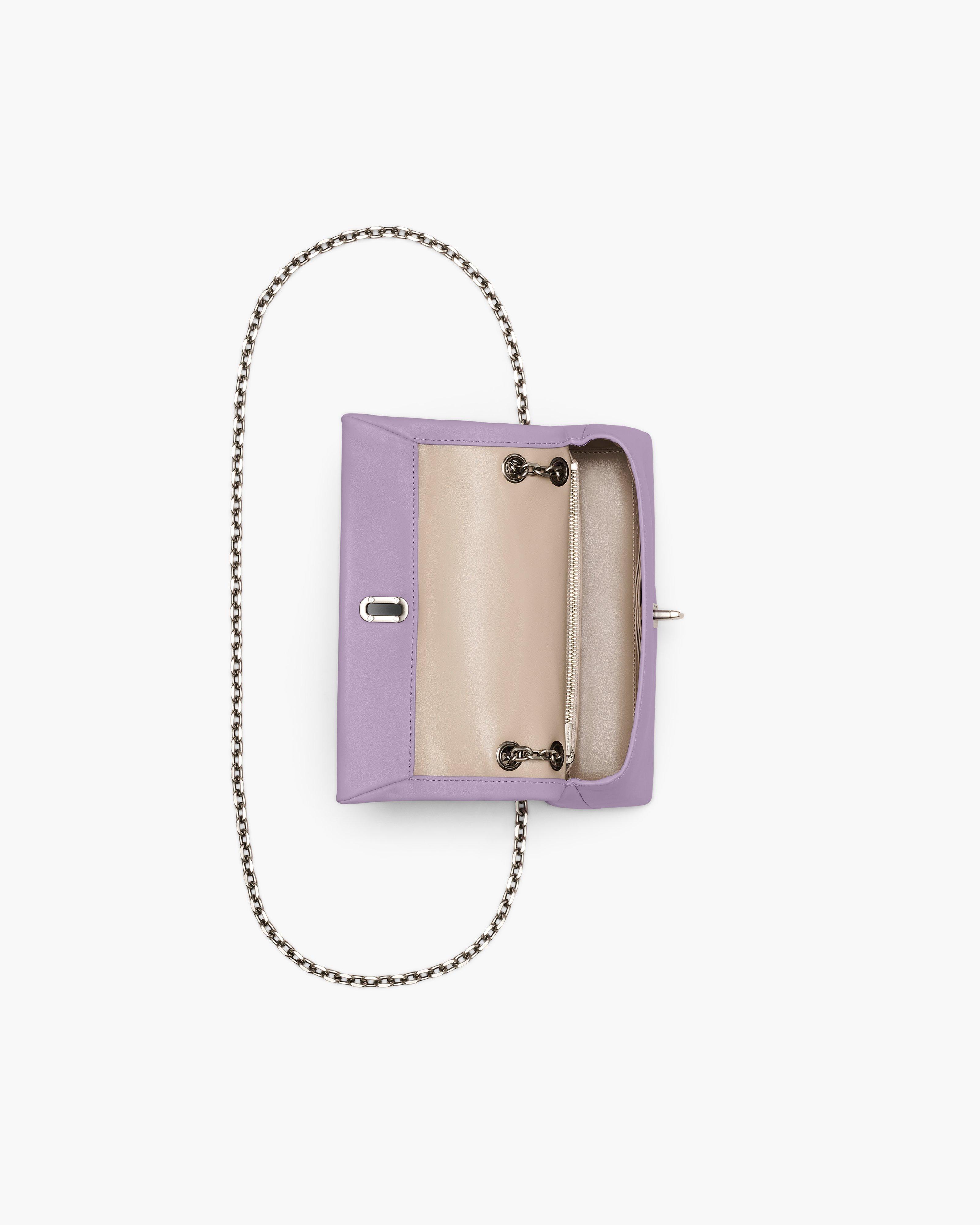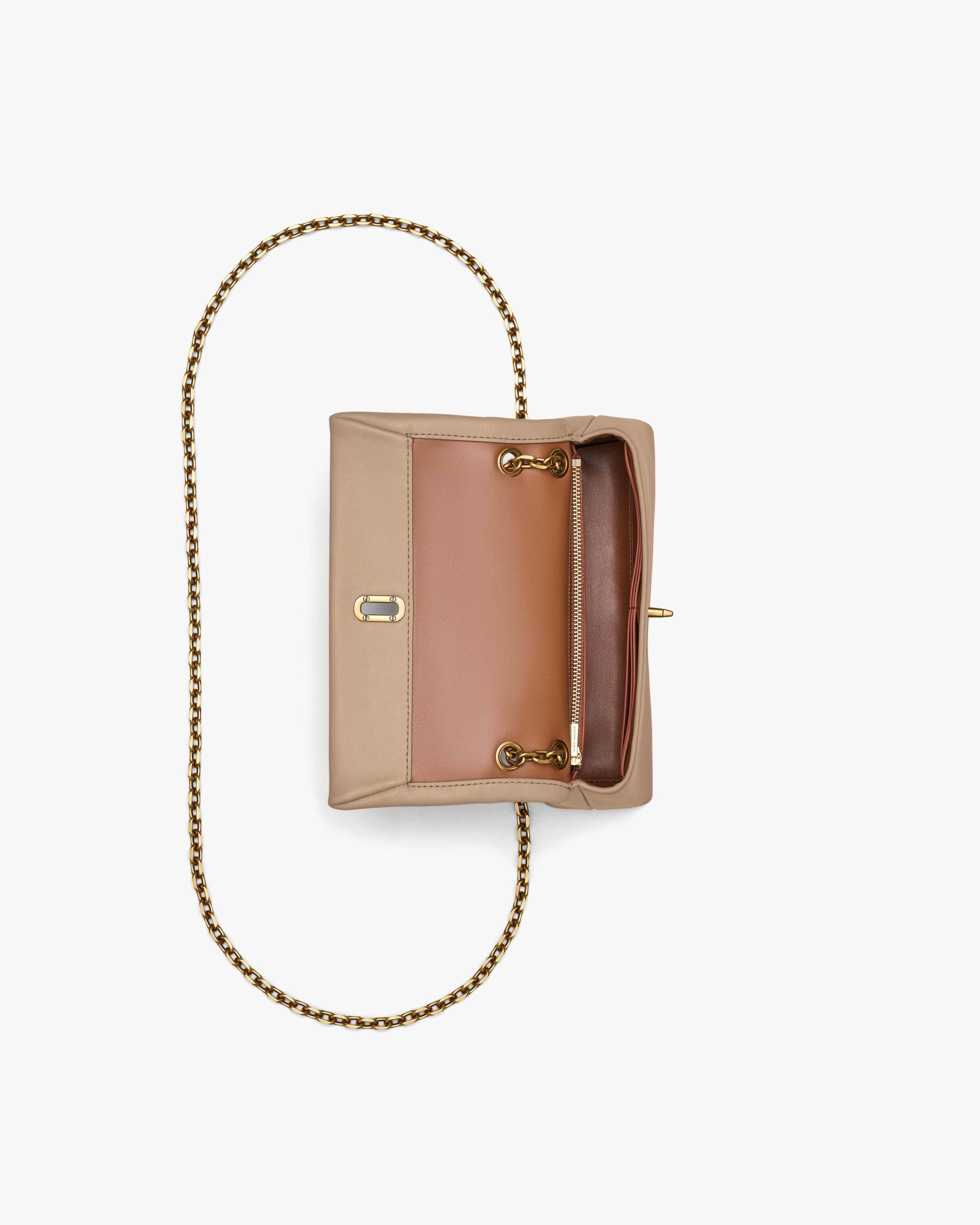 A sleek and elegant accessory inspired by the silhouette of our Dual collection. This high-style compact mini bag effortlessly stows your phone, credit cards, cash, keys and lipstick. Crafted in buttery smooth leather, The Dual Chain Mini Bag features an elevated J Marc turn-lock closure and a refined pull-through chain strap for over-the-shoulder or crossbody styling. Shop Marc Jacobs The Dual Chain Mini Bag