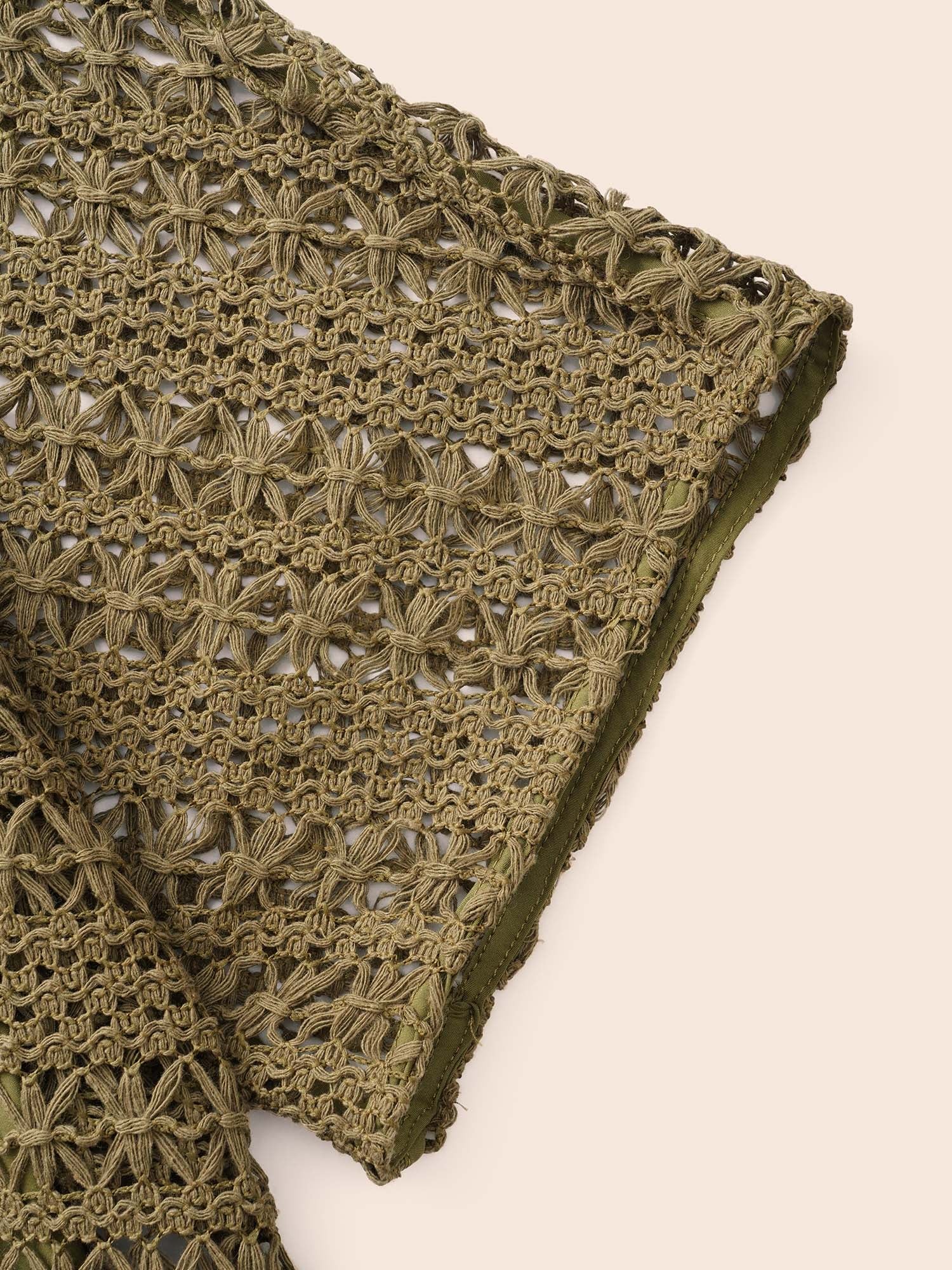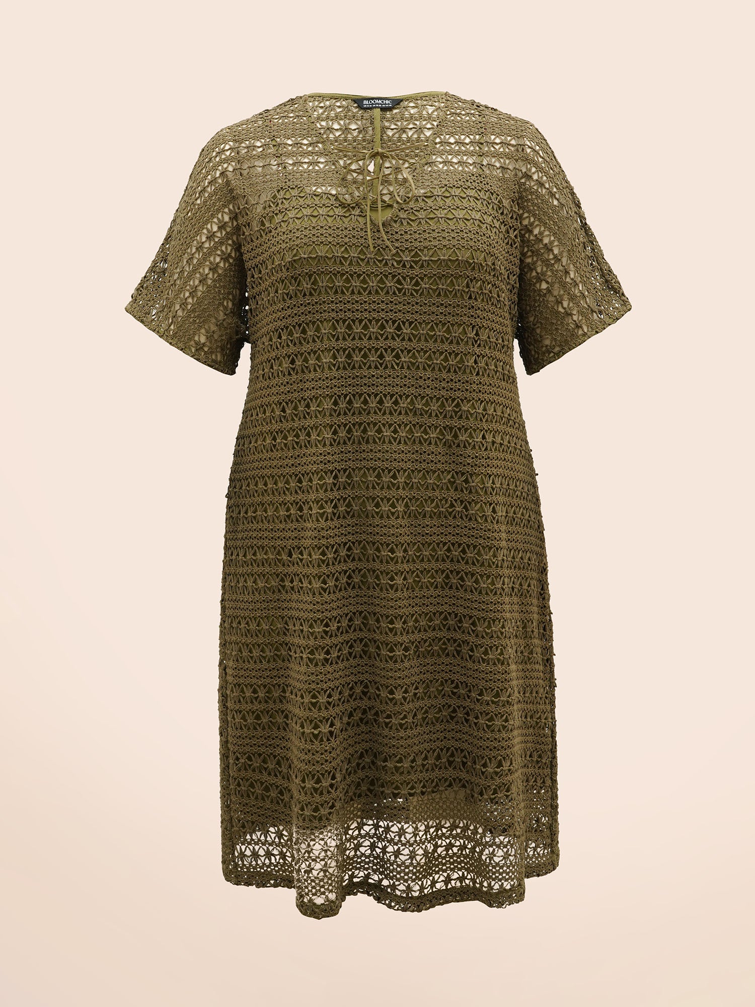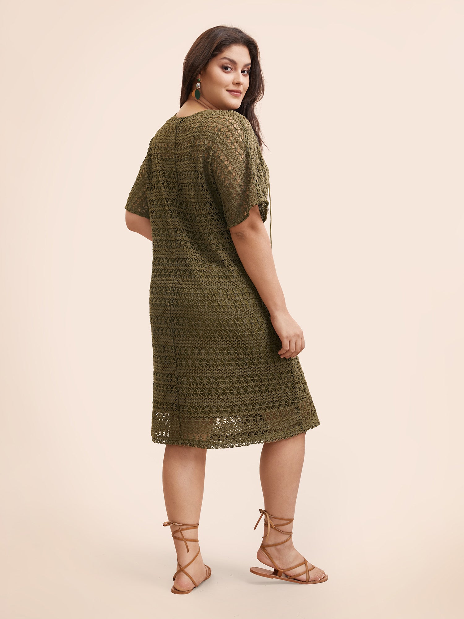 Crocheted Lace Up Dolman Sleeve Tiered Dress