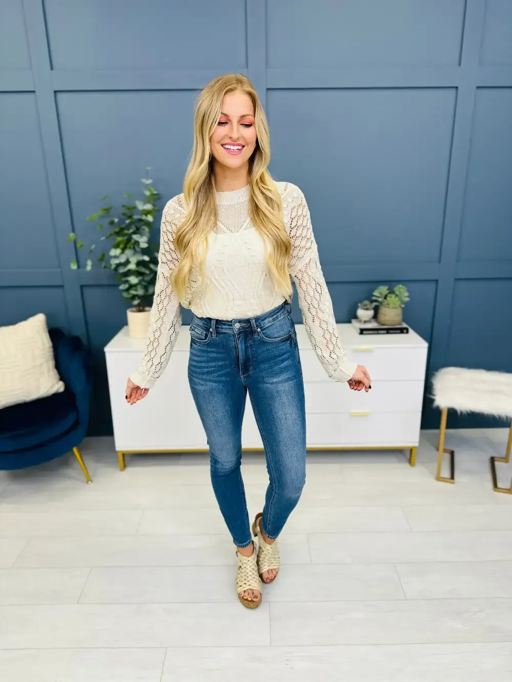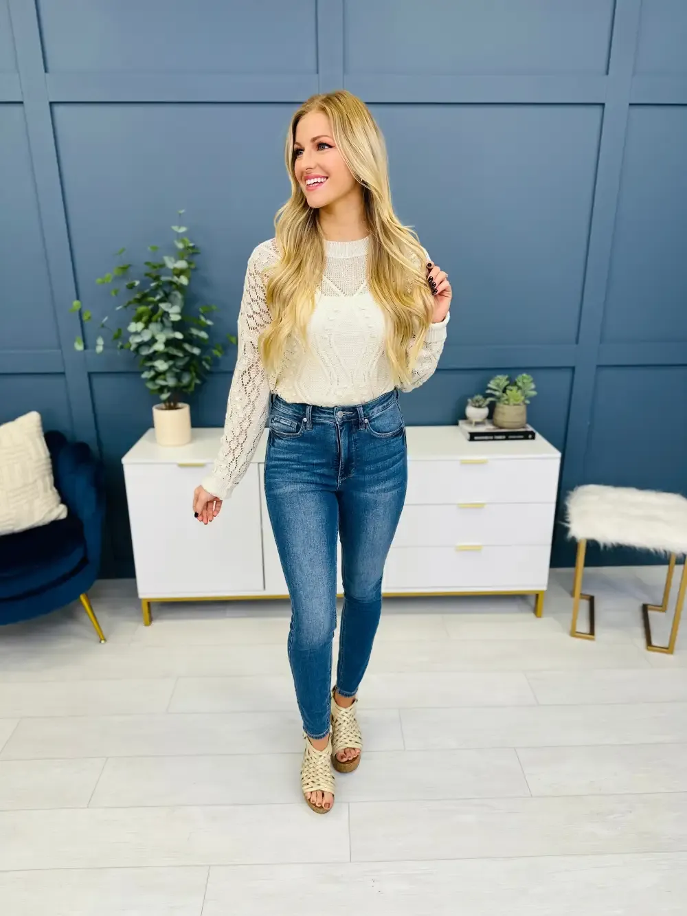 (2) THE STRETCH. These jeans feature 2% spandex, making them extra stretchy and comfortable-- AND-- they DO NOT SAG! These jeans move and groove with you throughout the day and snap right back into place! We love when comfort and trend combine and these jeans are the definition of that combination!