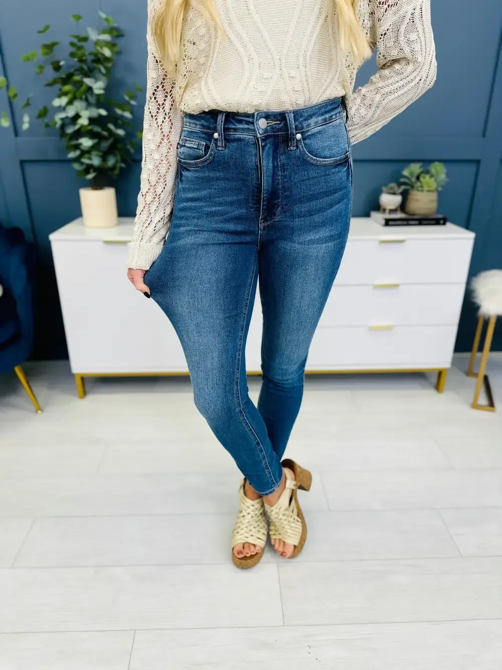 (1) VIRAL TUMMY CONTROL TECHNOLOGY. If you haven't tried our viral tummy control jeans, now is your chance, because we can never keep them in stock! If you have tried them, you know that you need every single pair that we release. Our viral tummy control technology features a stretchy band on the inside of the jean that sucks you in and smooths you out in all of the right places for a confidence boost that you didn't know could exist! The band is soft and stretchy and comfortable, too!