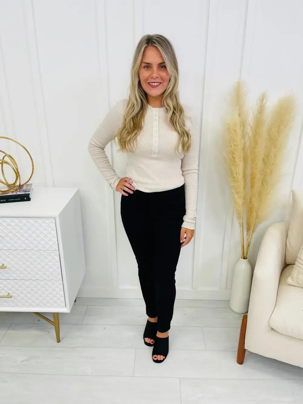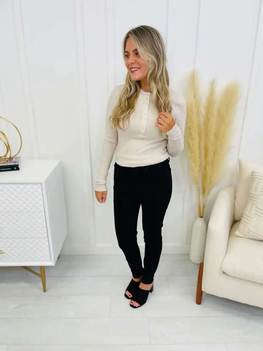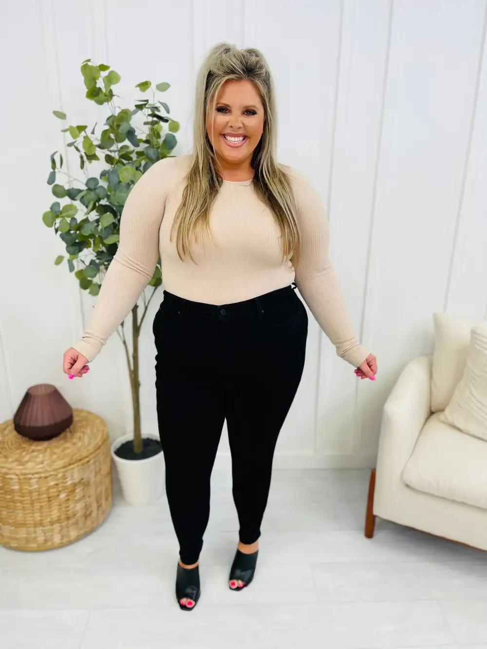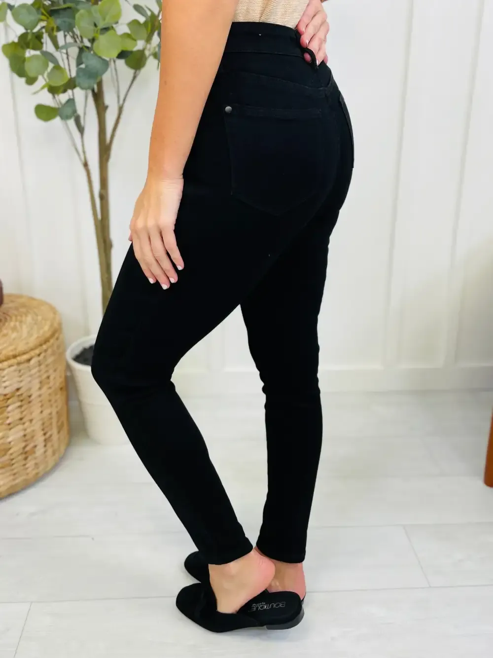 These black tummy control jeans feature our viral tummy control panel that sucks you in and slims you out in all of the right places without sacrificing stretch! You will never feel as confident as you do in these solid black tummy control jeans!