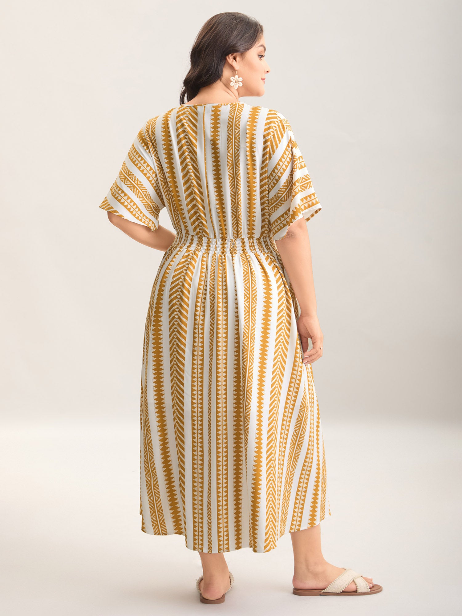 Solid Geometric Dolman Sleeve Pocket Shirred Split Hem Dress
